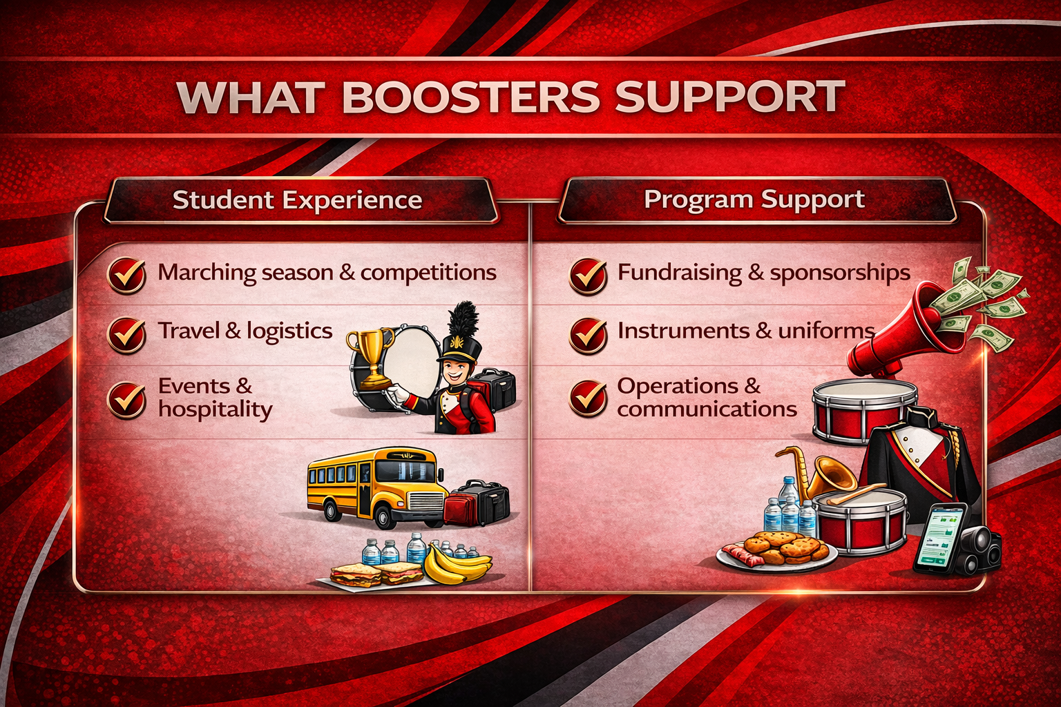 Behind every halftime show, competition run, and unforgettable trip is a team of volunteers making it happen.