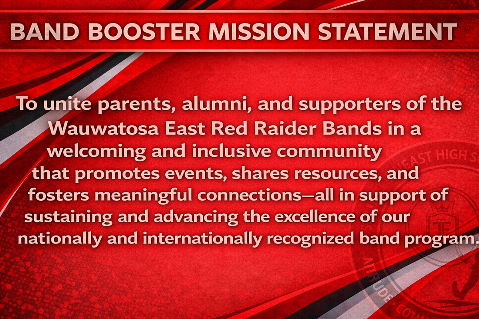 If you’re interested in supporting the Wauwatosa East Red Raider Band through sponsorship, we’d love to connect with you.